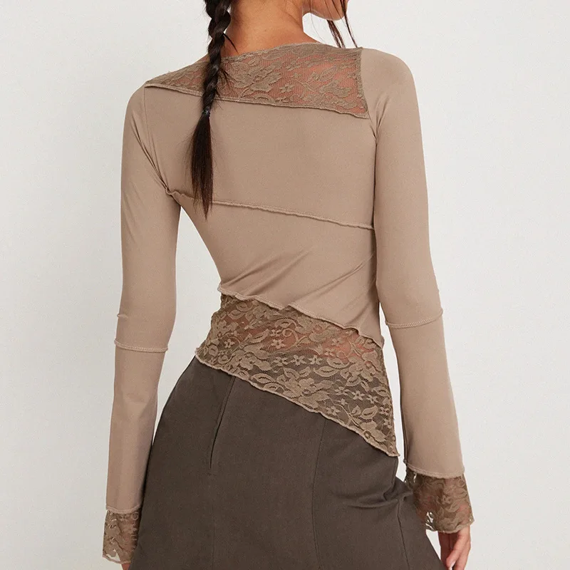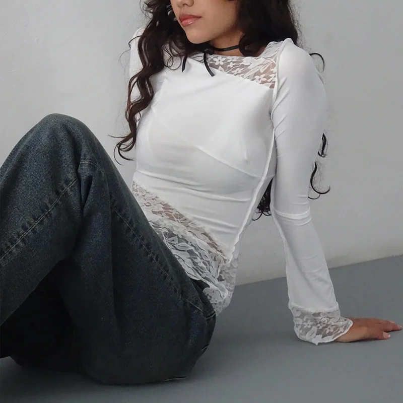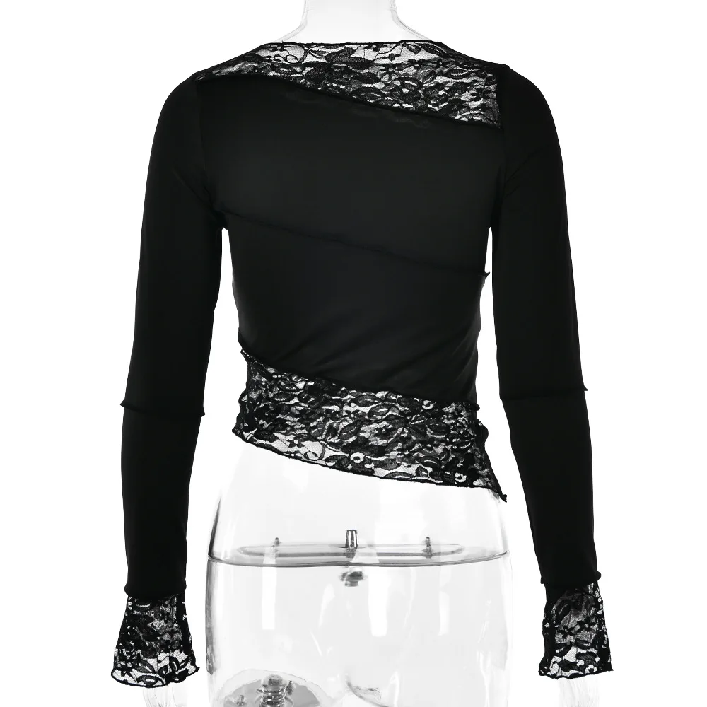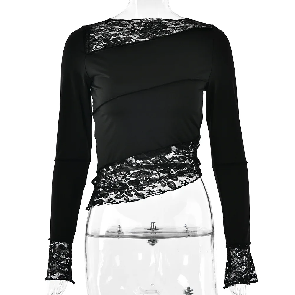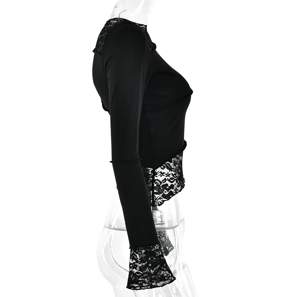 2025 New Latin Dance Top for Women Black Long Sleeve Lace Tight T-shirt Chacha Samba Modern Dance Training Performance Clothing