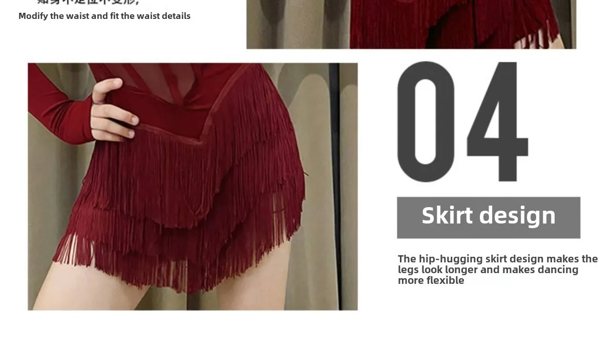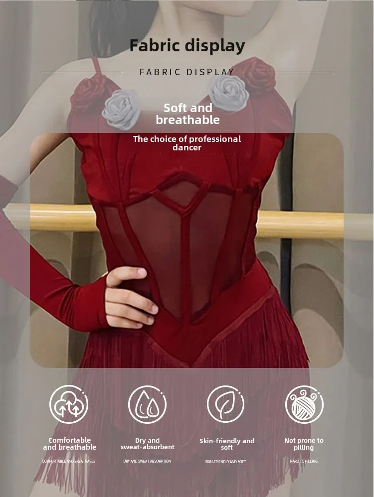 Children Latin Dance Dress Suit Red Bare Back Fringed Skirt Samba Cha-cha Rumba Training Performance Costume for Grils 2025 New